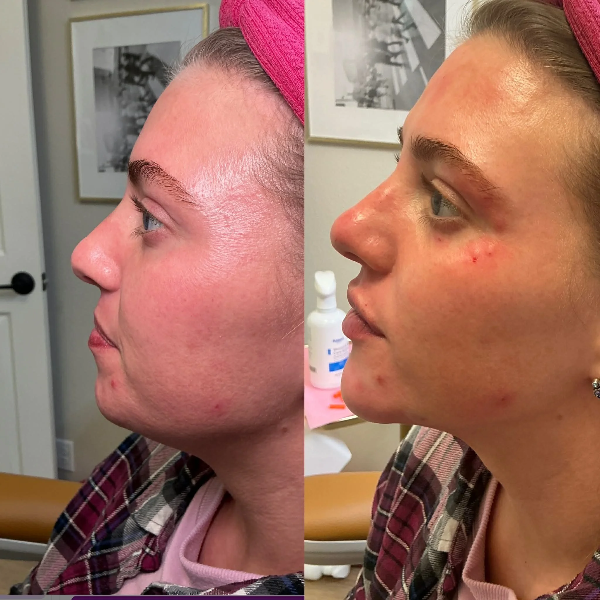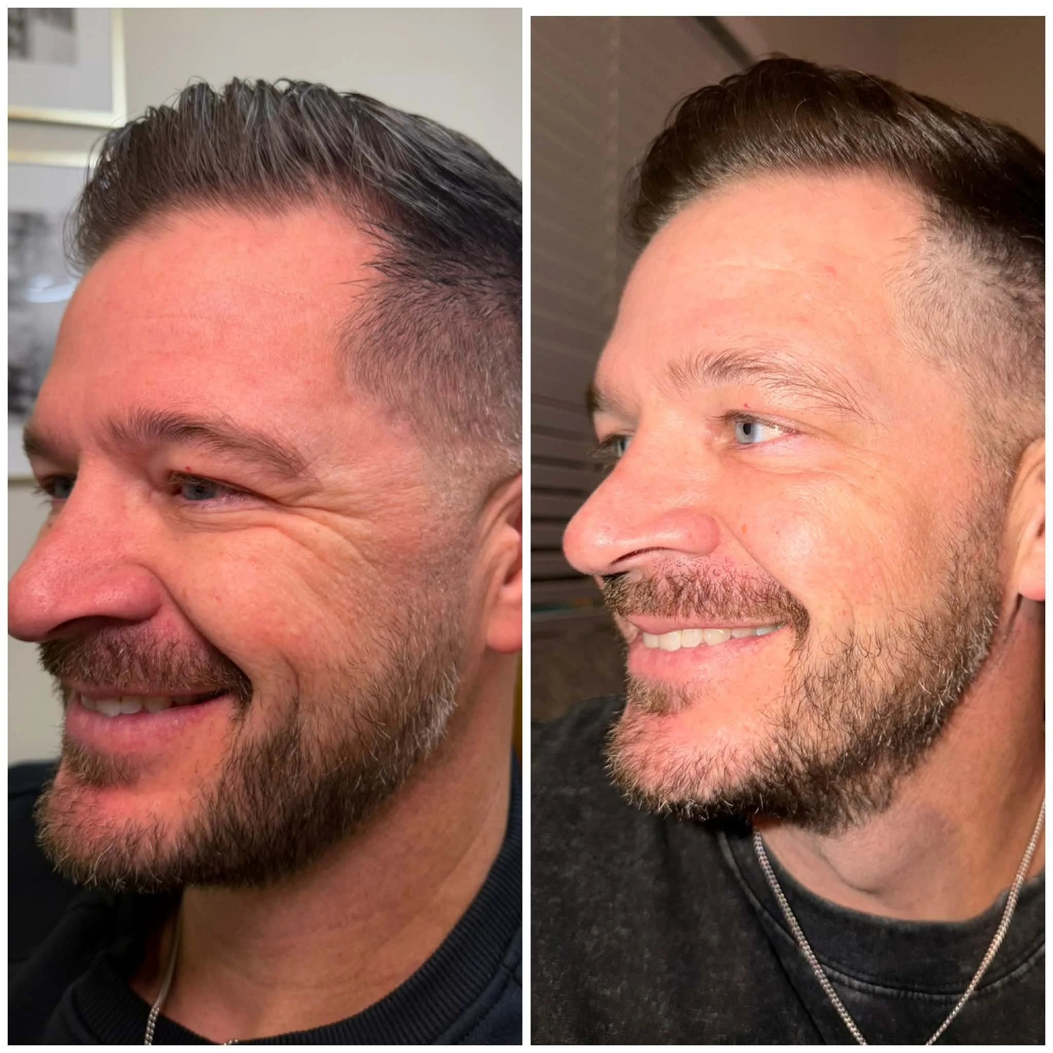 After having MOHS surgery on her nose, our beautiful client was left with a scar. We treated her nose with DAXXIFY, PDO threads, filler, and Sylfirm X Microneedling. She has also had a full face of DAXXIFY, facial balancing and a little lip filler.